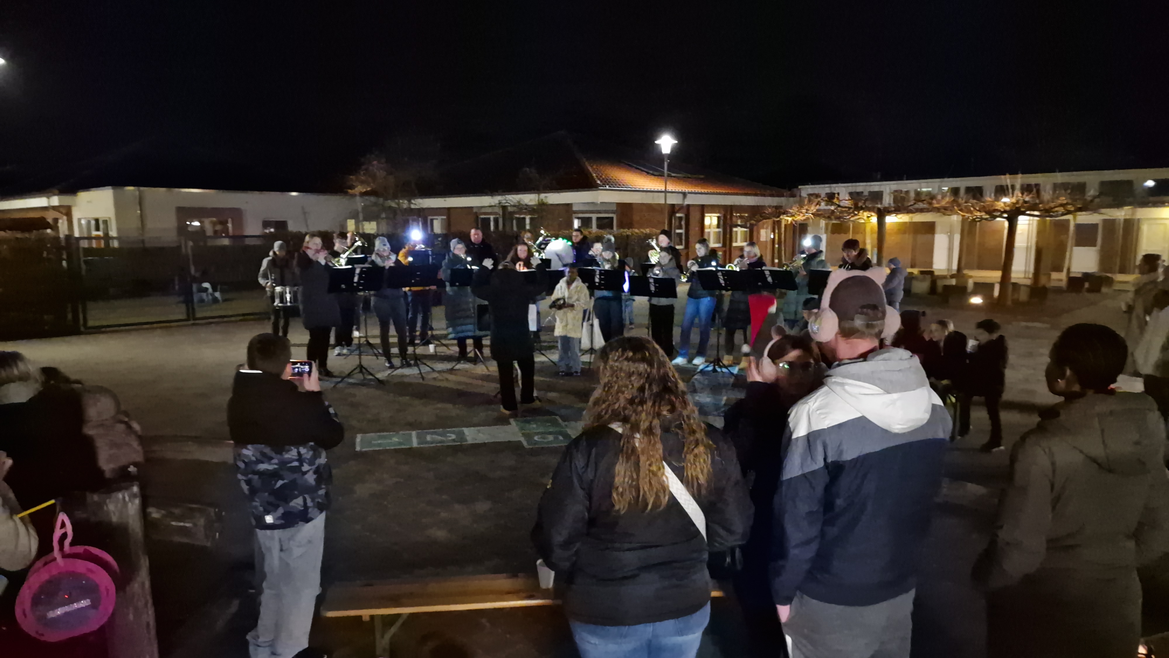 Der Trompetercorps spielte Adventsmusik und wir schenkten Punsch und heißen Kakao aus und boten Plätzchen an. Viele Kinder hatten ihre Laternen dabei und funkelten rund um die Musikanten wie kleine Lichterkinder – ein besinnlicher Auftakt in den Advent. Vielen Dank an die Musikanten, alle Besucher und die lieben Spenden für das Sparschwein unseres Fördervereins.
