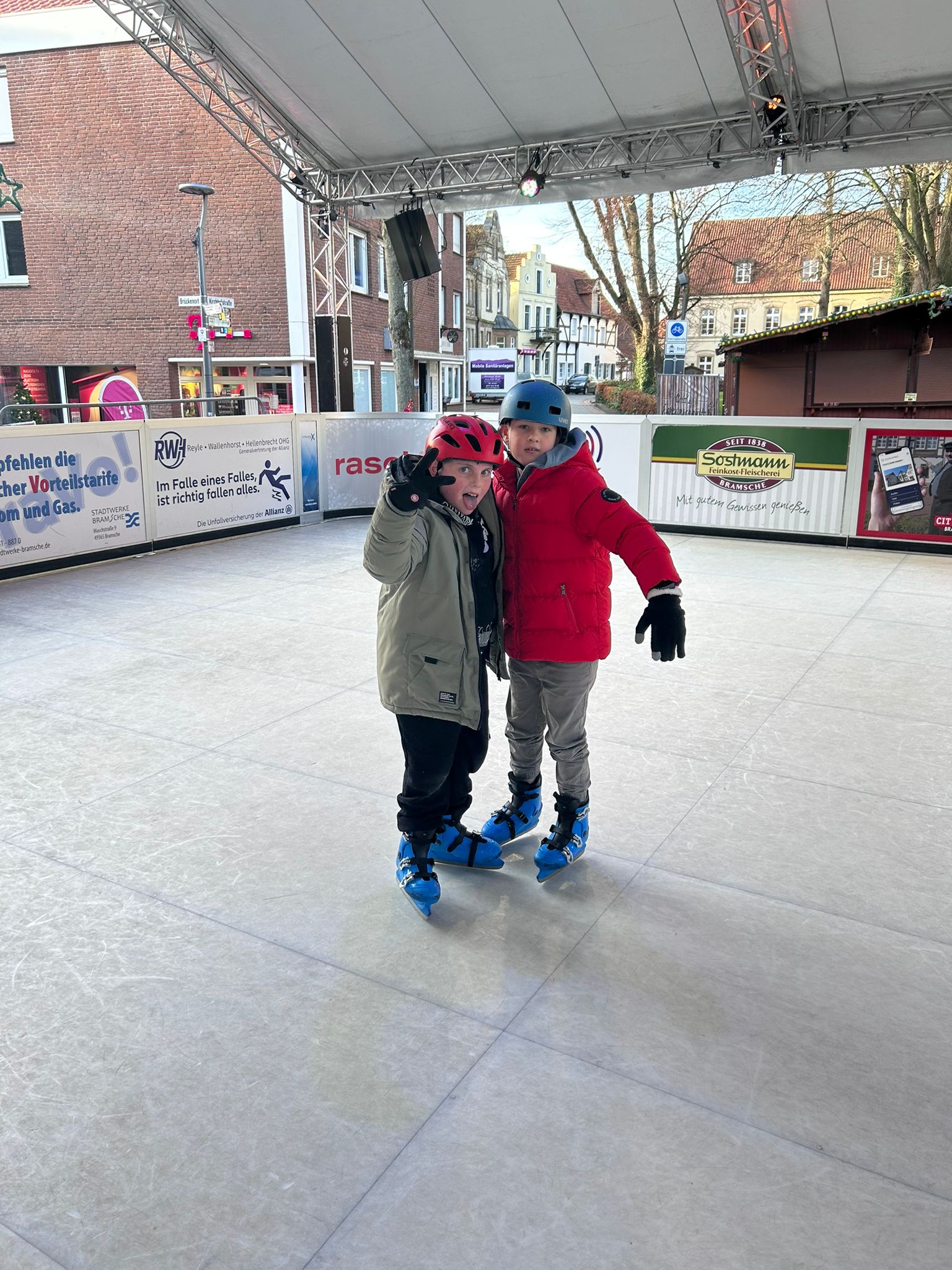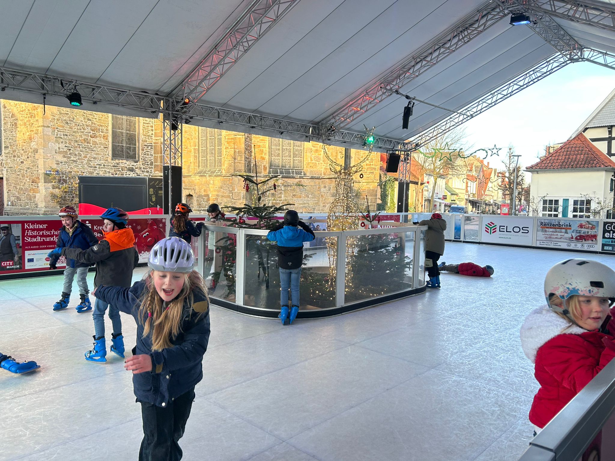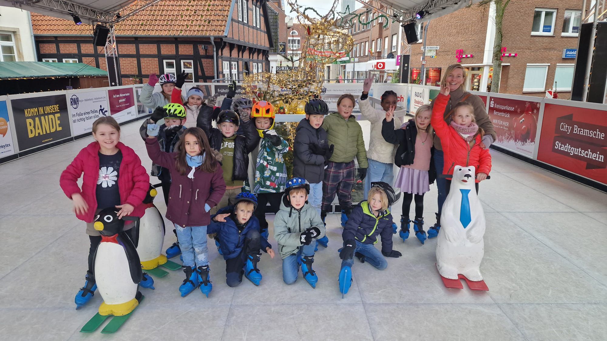 Jedes Jahr lädt das Stadtmarketing Bramsche die Klassen der Bramscher Schulen zum Eislauf-, äh pardon, Schlittschuhvergnügen auf dem Marktplatz ein.