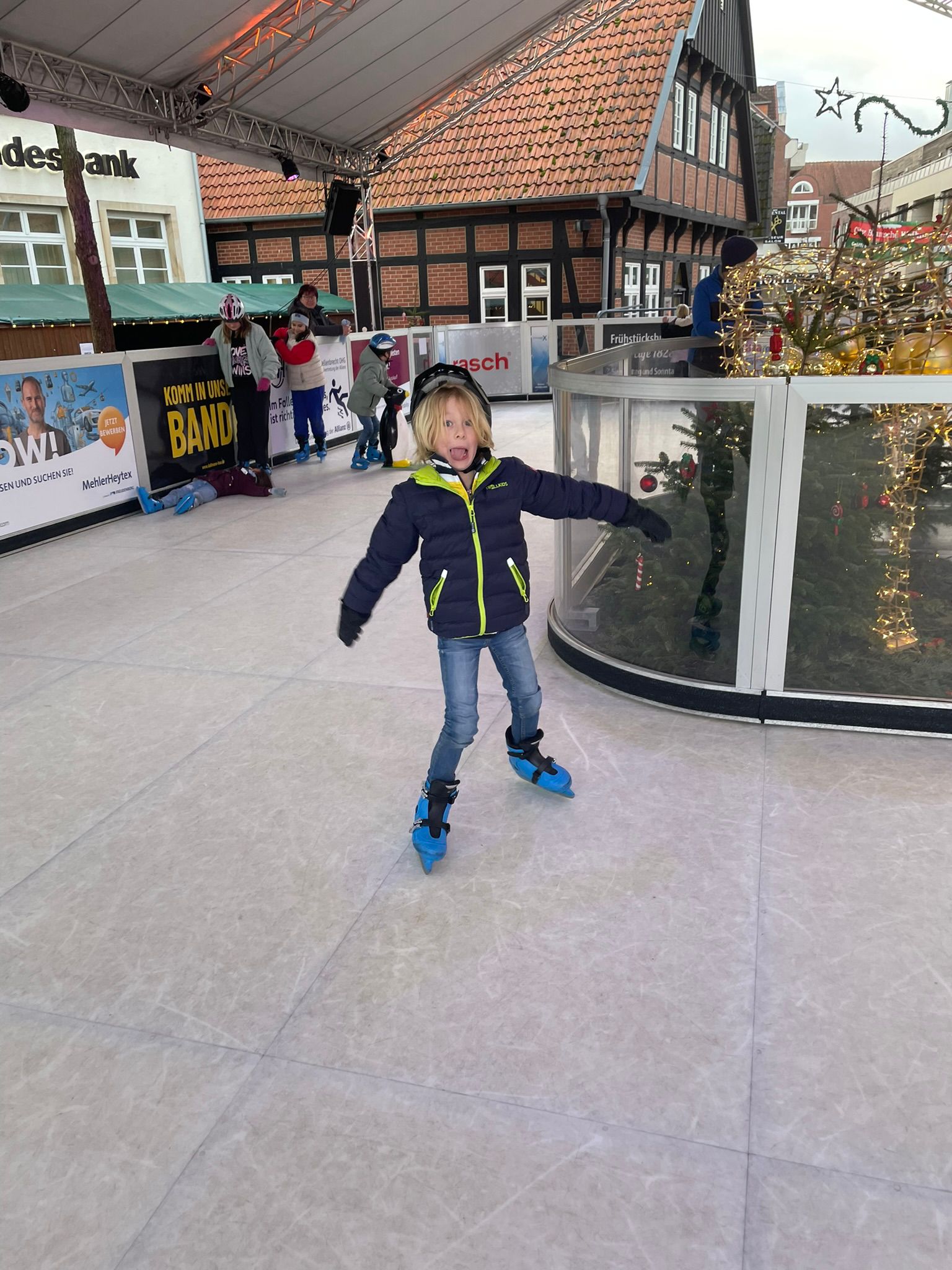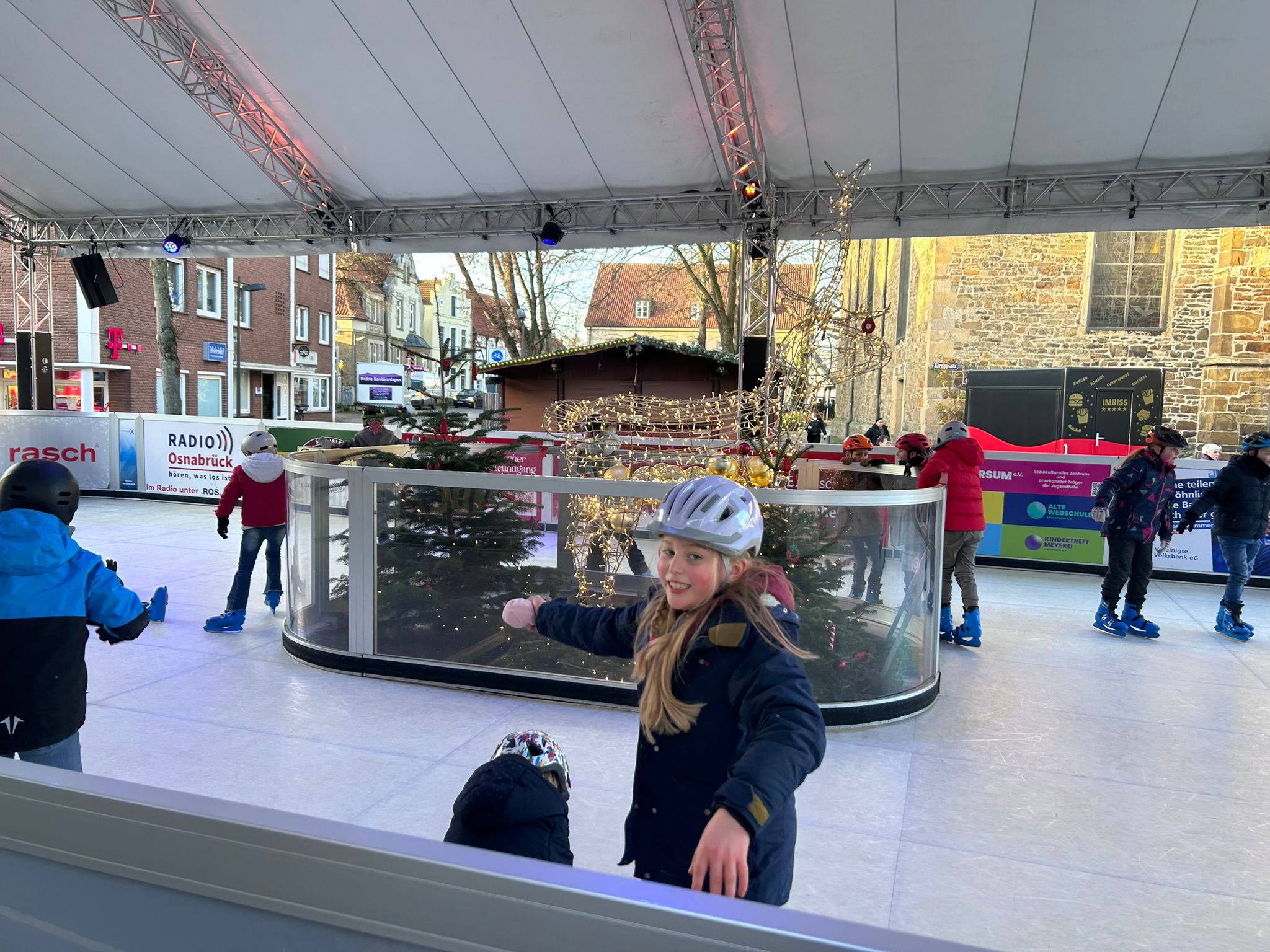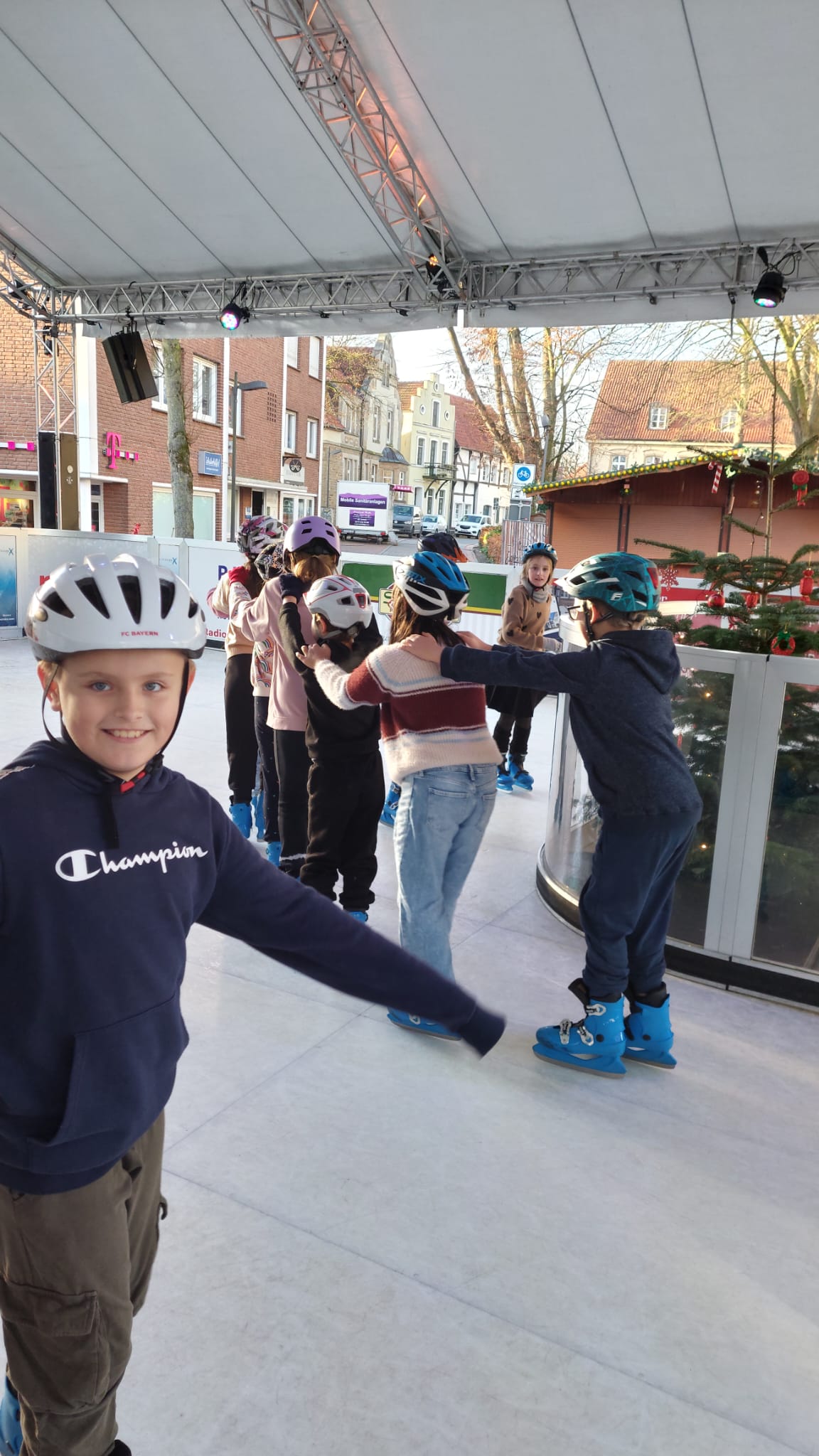 Jedes Jahr lädt das Stadtmarketing Bramsche die Klassen der Bramscher Schulen zum Eislauf-, äh pardon, Schlittschuhvergnügen auf dem Marktplatz ein.