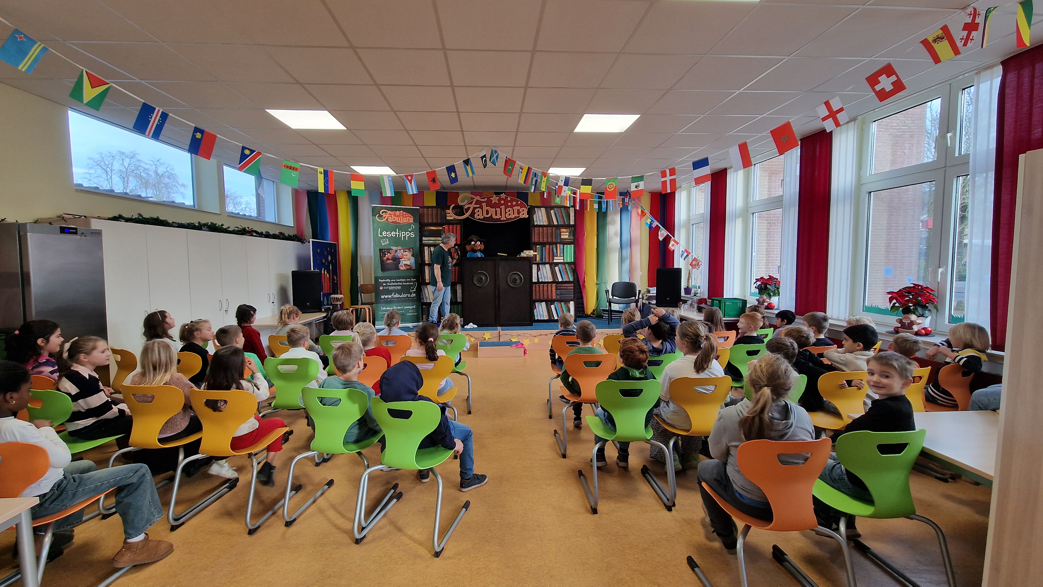 Nachdem uns im letzten Jahr das Weihnachtstheater in der Schule besucht hat, fuhren wir dieses Jahr wieder mit dem Bus nach Osnabrück. Dort schauten wir uns im Theater das Stück „Aladin und die Wunderlampe“ an. Das Theater in Osnabrück bietet vielen Kindern vielleicht das erste Mal im Leben die Möglichkeit, so ein großes und schönes Theater von Innen zu sehen, eine schöne Erfahrung.