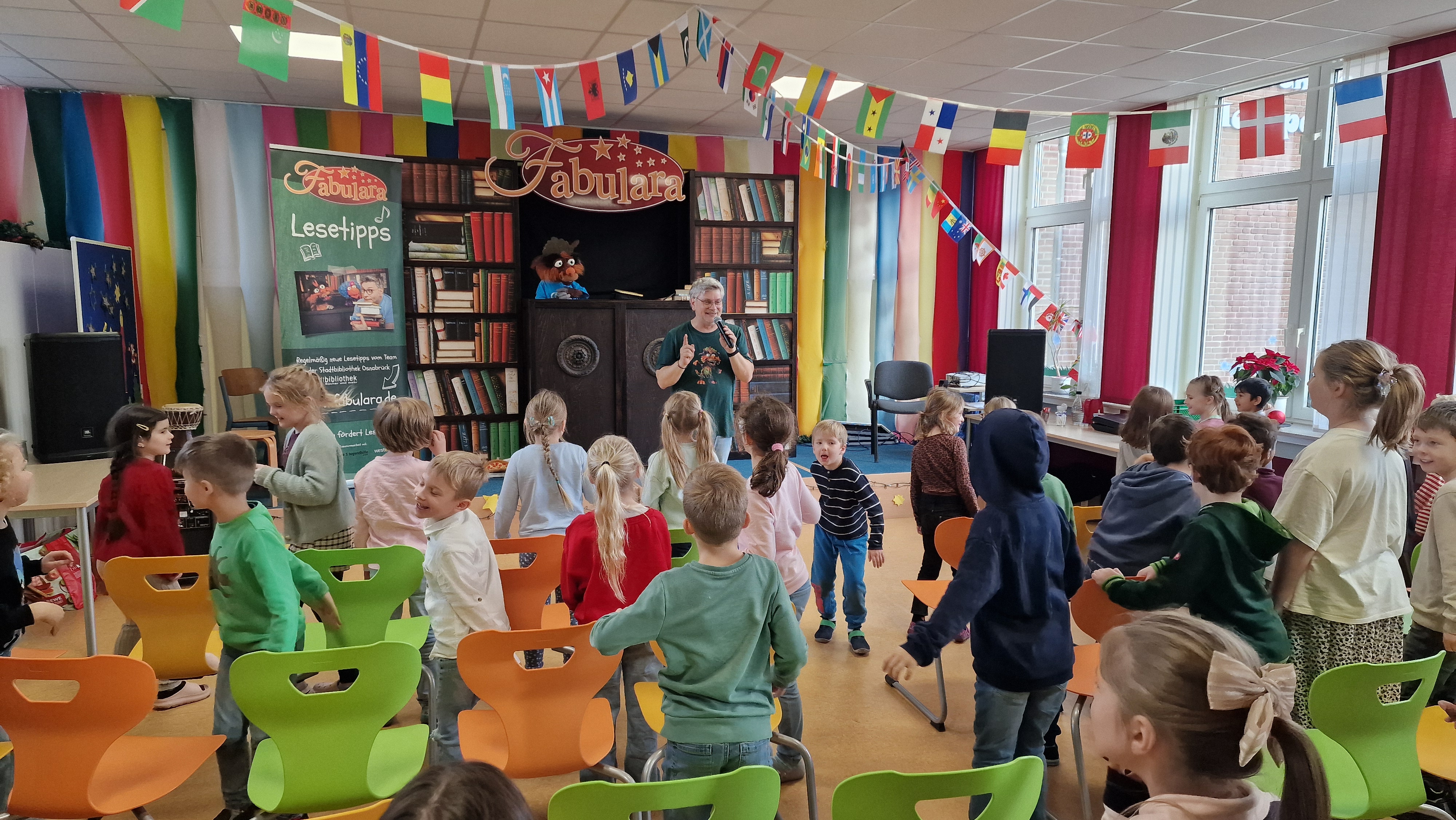 Ja, liebe Kinder, heute war wieder unser guter alter Freund Yogi mit seinem kleinen Feuerdrachen Baba Book und ihrer Freundin Laila Musica zu Besuch. Die drei haben uns mitgenommen ins Drachenland. Zusammen haben wir den Drachentanz getanzt, haben Yogis Bücherei auf den Kopf gestellt und geschaut, aus welchem Buch denn Baba herausgefallen sein könnte. Zum Glück haben wir es noch nicht gefunden, so kann Baba noch ein bisschen in Hesepe bleiben und bei Yogi. Schön, dass ihr da seid und ihr uns mitgenommen habt in die Welt der Bücher, in eure Fantasiewelt. Lesen ist etwas Wunderbares, liebe Kinder!