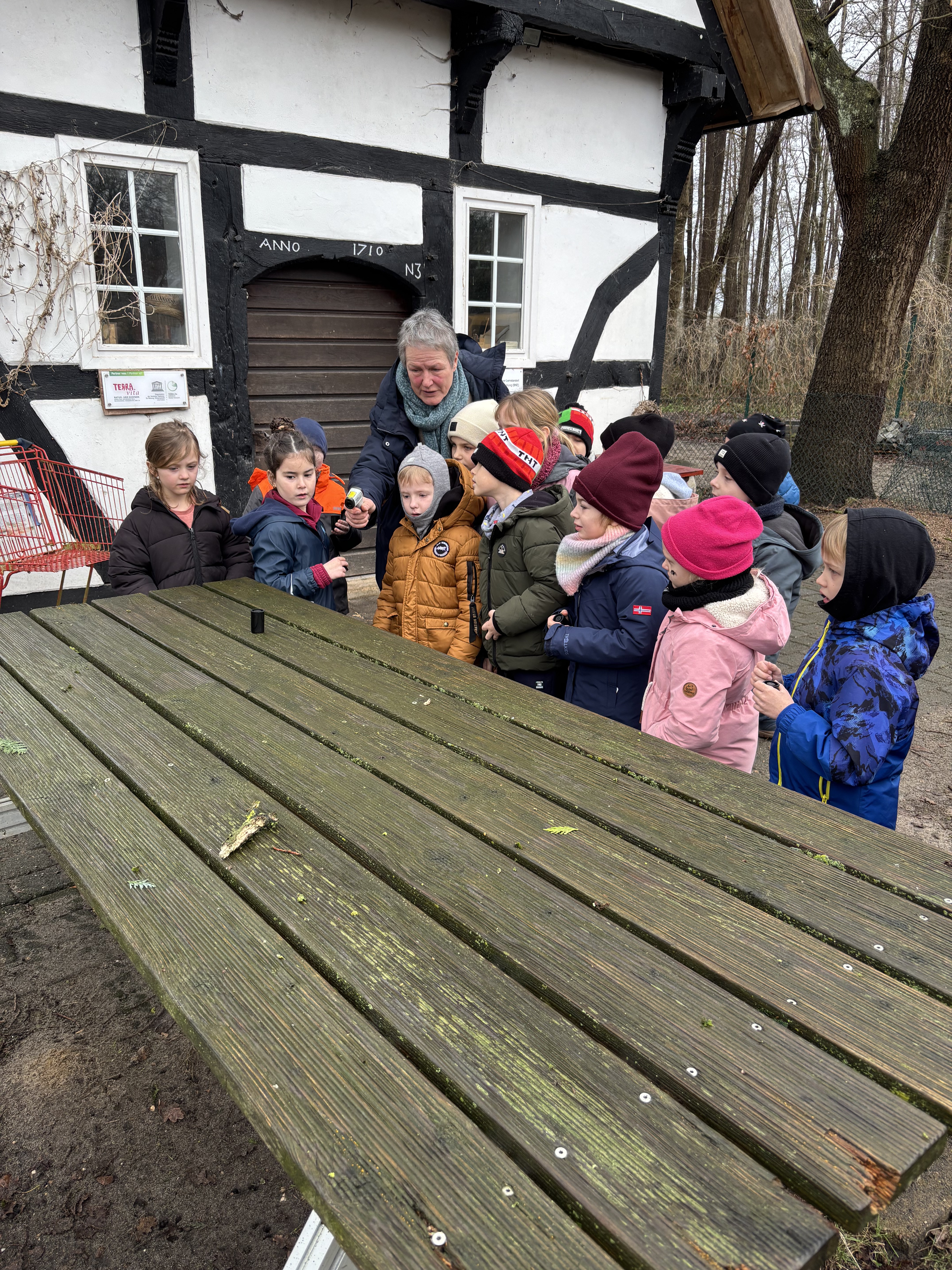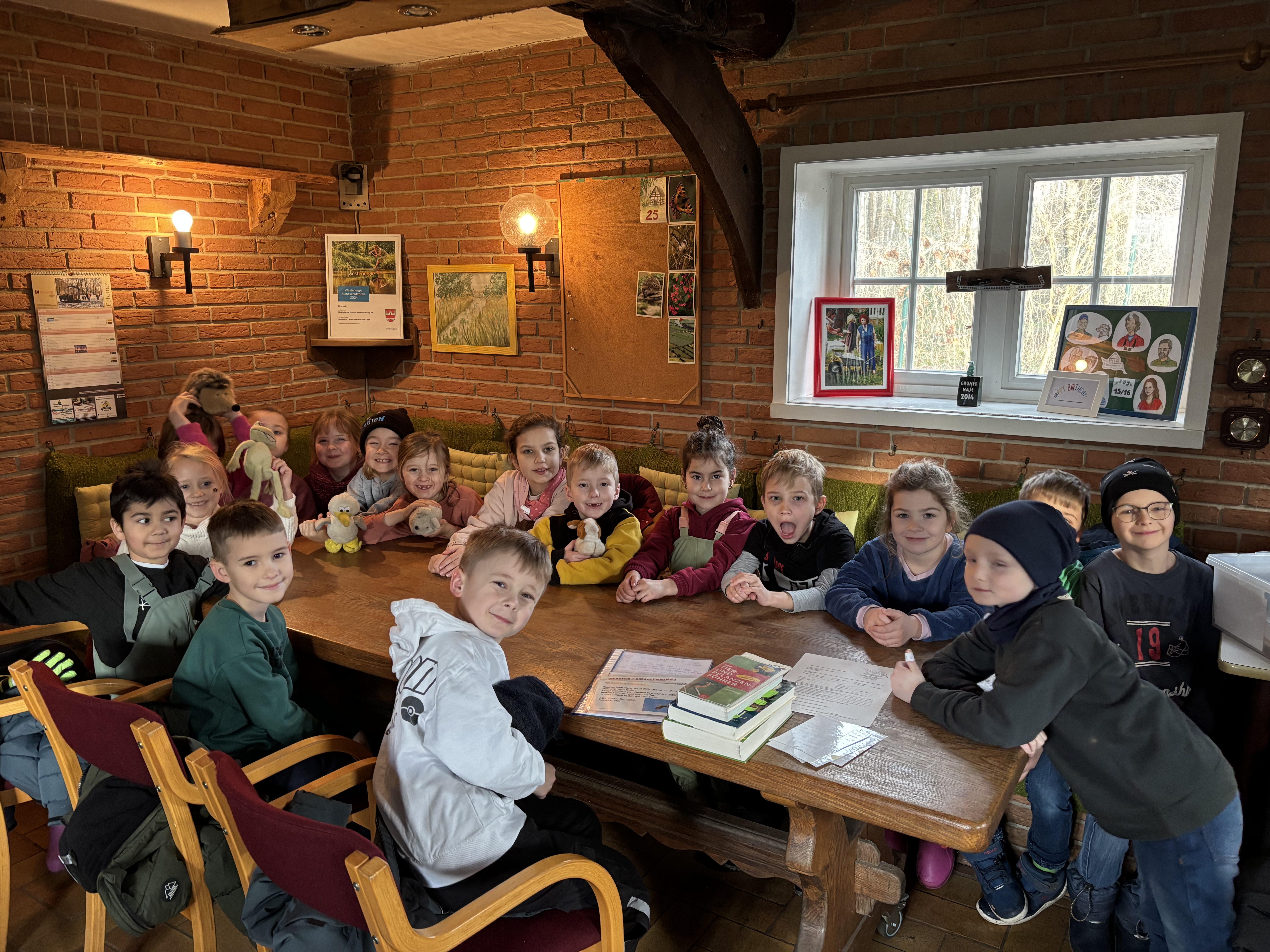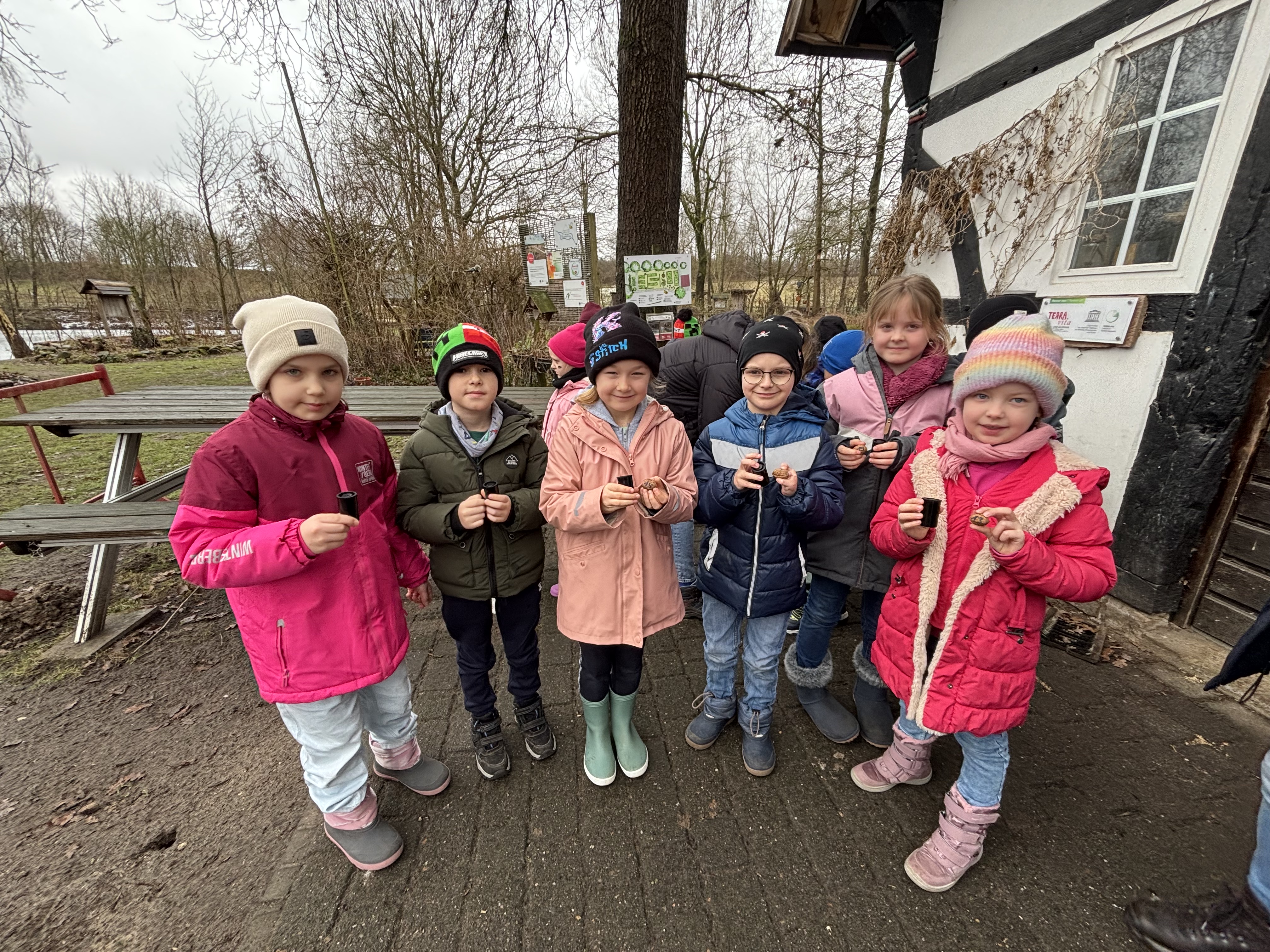 Am 17.02. besuchte die 1. Klasse, am 25.02. die 2. Klasse unserer Grundschule die Biologische Station Haseniederung. Gemeinsam fuhren wir in Autos zur Station und starteten den Tag mit einem gemütlichen Frühstück im kleinen Fachwerkhaus.